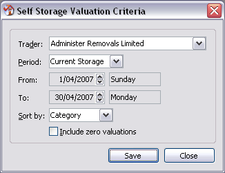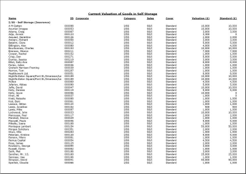 Navigation: Reports > Self Storage > Valuation Of Goods |