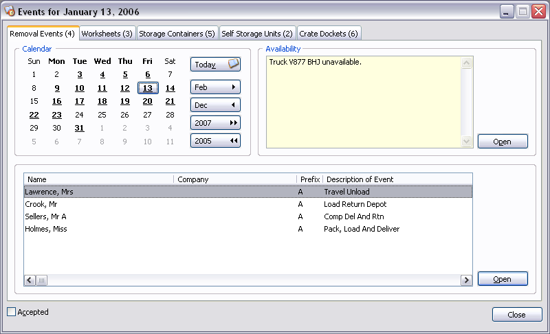 TIP To view the seasonal margin for a specific day, simply hover your mouse pointer over the calendar day. The Removal Events Tab of the Event Diary will refresh every 'x' number of seconds if the window is active (see - System Defaults - Event Diary). |