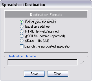 Navigation: Appendix > Spreadsheet Wizard > Spreadsheet Destination |
